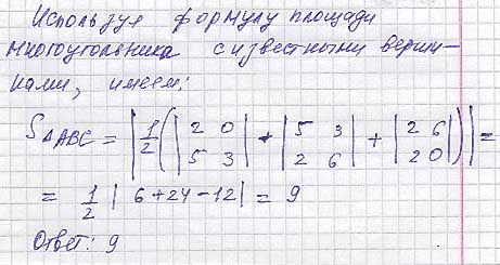 Задача 31Задача 31. Вычислить площадь треугольника с вершинами A(2; 0), B(5;3), C(2; 6).
