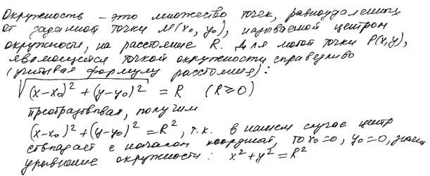 Задача 41Задача 41. Показать, что уравнением окружности с радиусом R и с центром в начале координат будет x2 + y2 = R2.