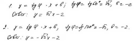 Задача 75Задача 75. Построить прямые, заданные параметрами: 1) b = -2, φ = 60o и 2) 1) b = -2, φ = 120o и написать их уравнения.